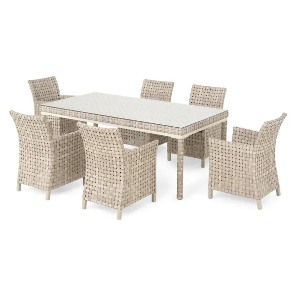 LEIRIA Set mobilier exterior gradina/terasa 6 scaune si masa 150 x 90 Maro LIVRARE GRATUITA