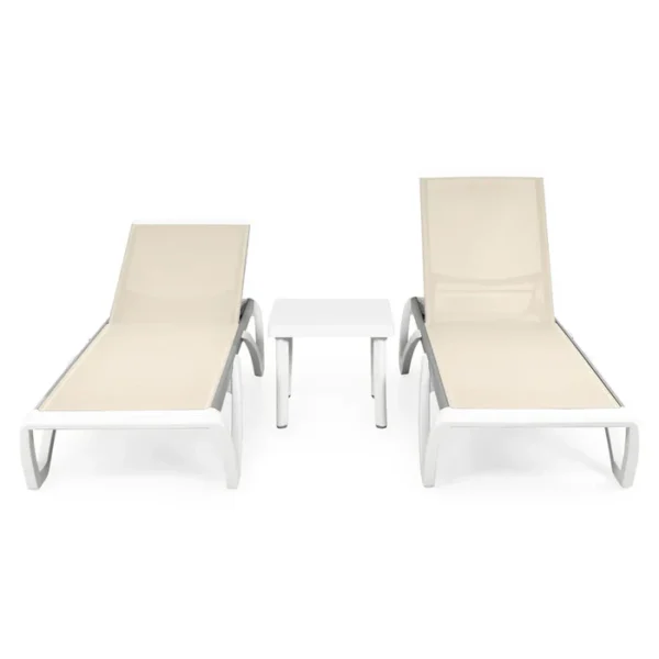 ROPORT Set mobilier plaja/gradina/terasa, 2 sezlonguri și masa Alb/Crem LIVRARE GRATUITA