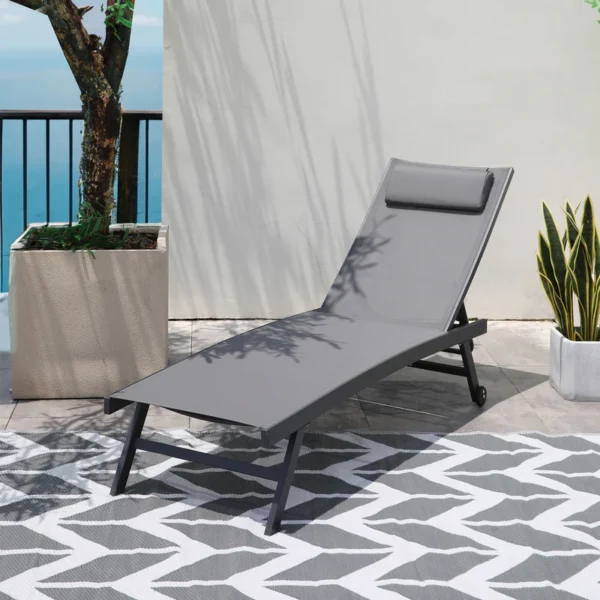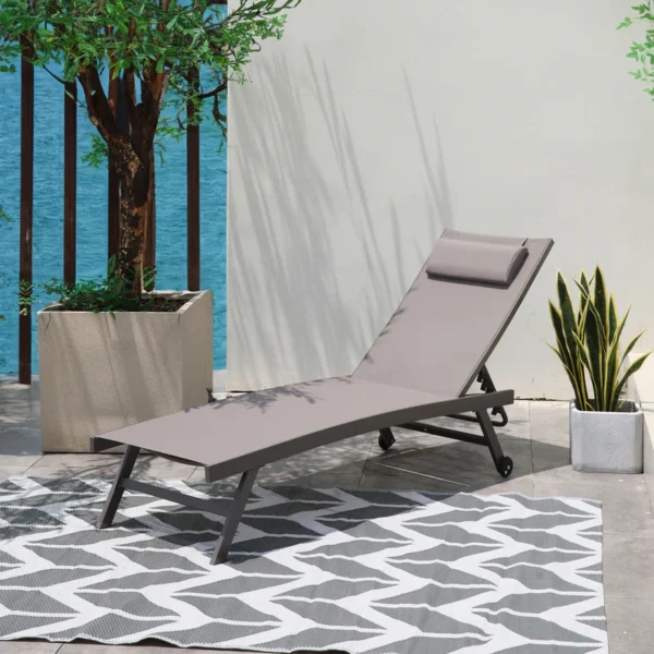HELOTES Sezlong plaja/gradina/terasa Gri/Alb LIVRARE GRATUITA
